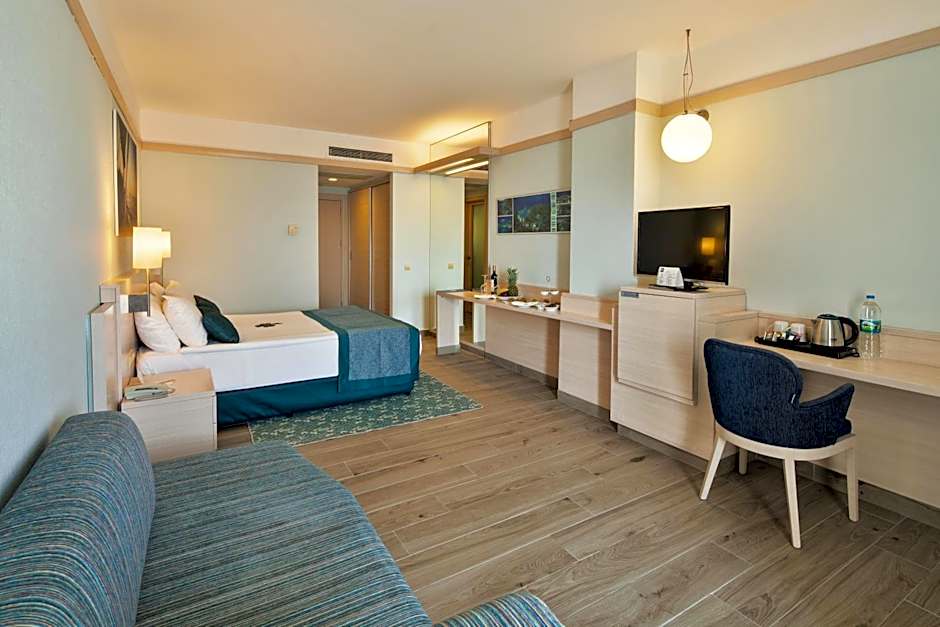 Standart Pool View Room is 291 square feet and includes a king-size bed 150-183 width plus extra beds on demand, hairdryer, tea and coffee making facilities , and safe.